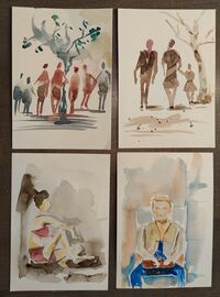 Ich biete an in meinen Kursen Aquarelle auf Postkartenformat A6 unter Anleitung zu kreieren. Ich führe in die Aquarellmalerei ein, zeige Beispiele und unterstütze bei der eigenen Umsetzung. Die Teilnehmerzahl ist auf max. 6 Erwachsene begrenzt.